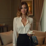 Une robe blanche avec des lunettes noires pour une allure chic et élégante. Ce look est parfait pour les occasions spéciales où vous voulez avoir l’air sophistiqué.